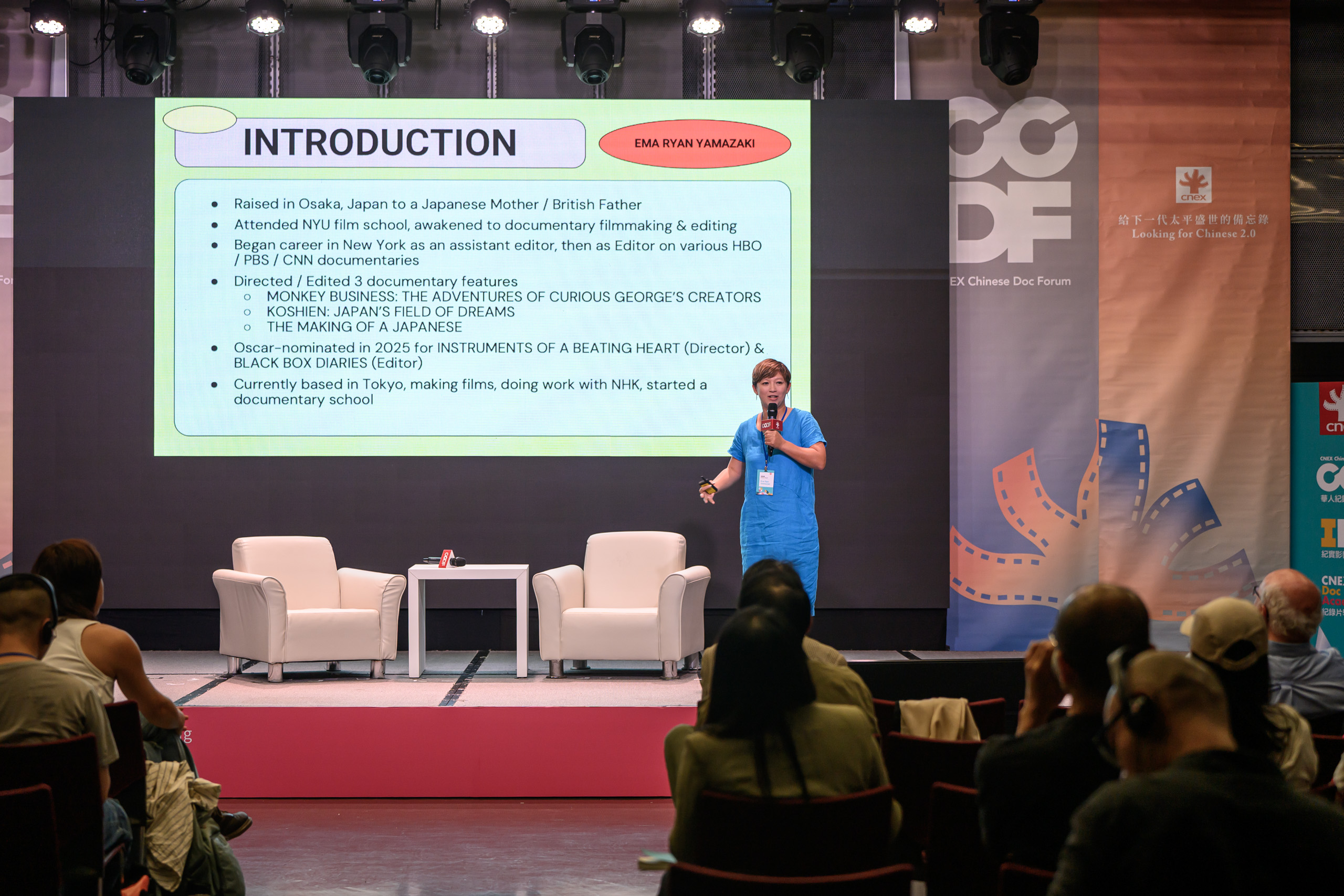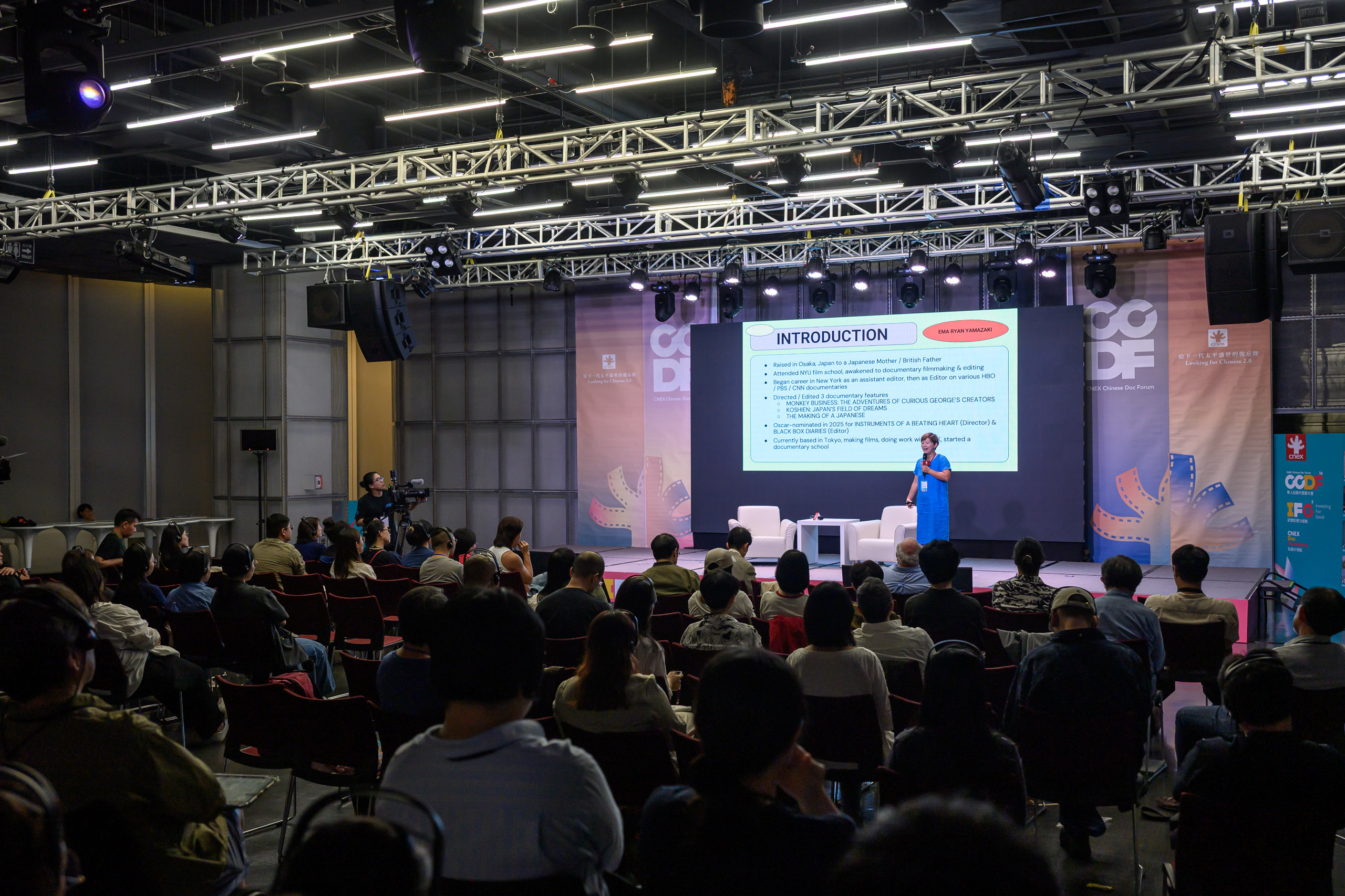 以短片《Instruments of a Beating Heart》獲奧斯卡提名的日本紀錄片導演暨剪輯師 Ema Yamazaki,於 CCDF 大師講堂中分享其創作歷程,深入探討紀錄片如何作為一種「文化翻譯」的媒介。她以自己的紀錄長片《The Making of a Japanese》為核心案例,說明長期觀察式拍攝如何揭示深植於日常制度中的社會價值,特別是教育體系。